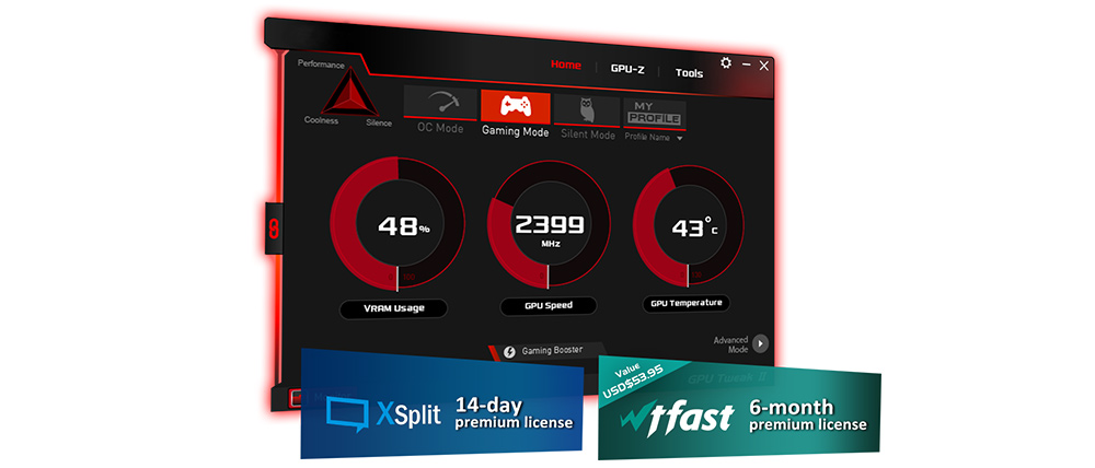 Donanım, işleri bir sonraki seviyeye taşımak için araştırma ve geliştirmenin uygulandığı tek alan değildir. ROG ekibi, beklediğiniz standart takip, ince ayar ve diğer ayarların yanı sıra benzersiz özellikler sunmak için GPU Tweak II yazılımını geliştiriyor. Tüm birinci sınıf ekran kartlarımız gibi, Phoenix GeForce GTX 1650, çevrimiçi deneyiminizin olabildiğince iyi olmasını sağlamak için XSplit yayın yazılımı ve wtfast'ın Gamers Private Network yazılımı ile birlikte geliyor. |