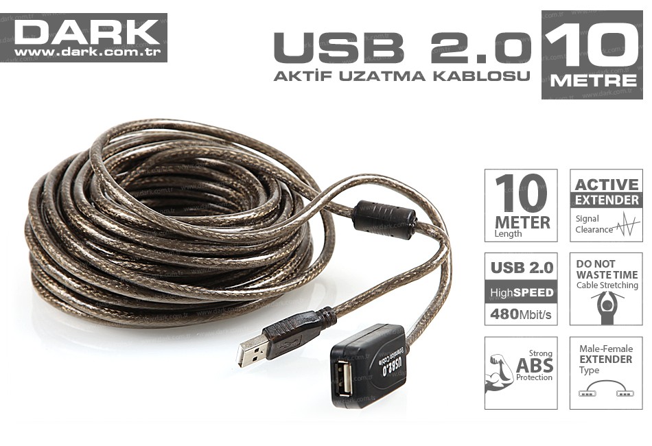 DARK DK-CB-USB2EXTL10A 10 Metre Usb 2.0 Aktif Uzatma Kablosu