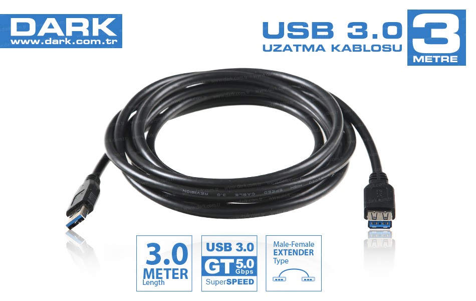 Dark USB3EXTL300 Usb3.0 Usb 3 Mt Uzatma Kablo