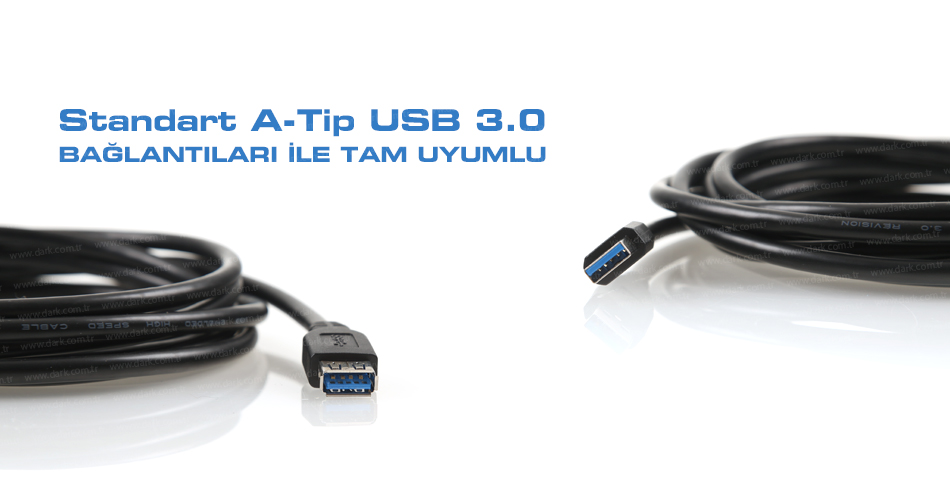 Kasa arkasındaki USB 3.0 bağlantılarınızı masa üzerine taşımak veya uzak noktalarda USB 3.0 HUB ve kart okuyucunuzu kullanmak için Dark 3m USB3.0 kablosunu kullanabilirsiniz.