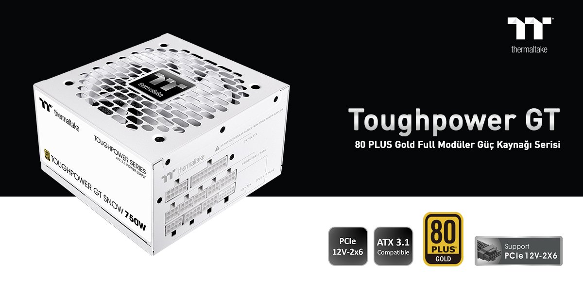 Tamamen modüler yapıya sahip Toughpower GT Serisi, 80 PLUS Gold verimliliği sağlamak üzere tasarlanmış olup ATX 3.1 standartlarıyla uyumludur. PCIe 12V-2x6 (12+4 pin) modüler arayüzü sayesinde PCIe 12+4 pin grafik kartlarına verimli bir şekilde güç iletir. Kapsamlı 5 yıllık garanti ile desteklenen Toughpower GT Serisi, güvenilir performansa sahip yeni bir güç kaynağı arayan değer odaklı kullanıcıların ihtiyaçlarını karşılar.