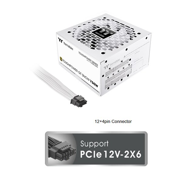 Toughpower GT Serisi, yeni nesil GPU'ları yerel olarak desteklemek için PCIe 12V-2x6 konektörüyle donatılmıştır ve güçlü, istikrarlı bir performans sunar. PCIe 12+4 pin kablo konektöründe belirtilen watt değeri, önerilen güç seviyesini temsil eder (Intel tasarım kılavuzuna göre).