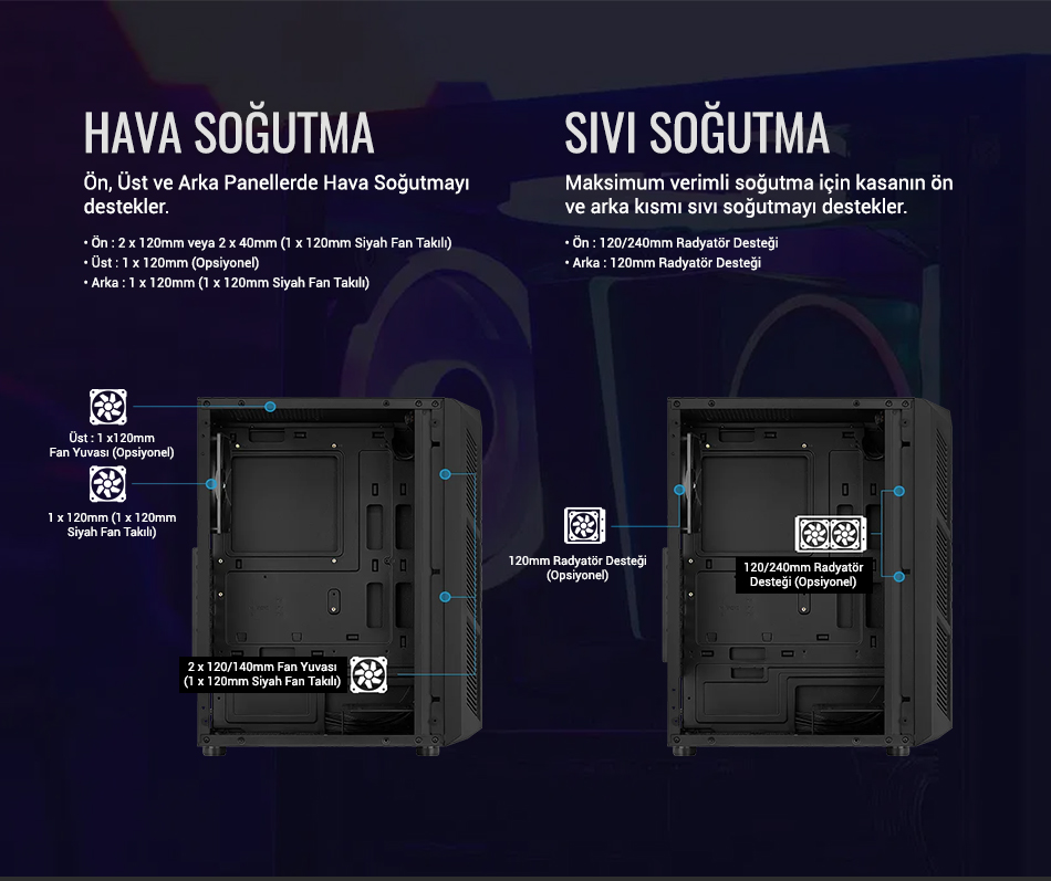 | Fan Yuvası | : 2 x 12/14cm ve 2 x 12cm |