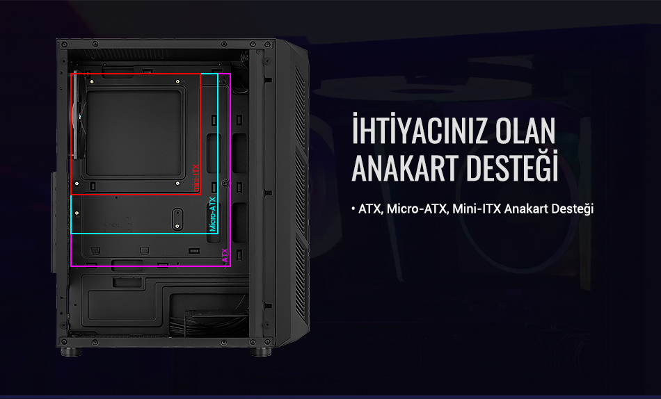| Desteklenen Anakart Tipi | : ATX, Micro-ATX, Mini-ITX |