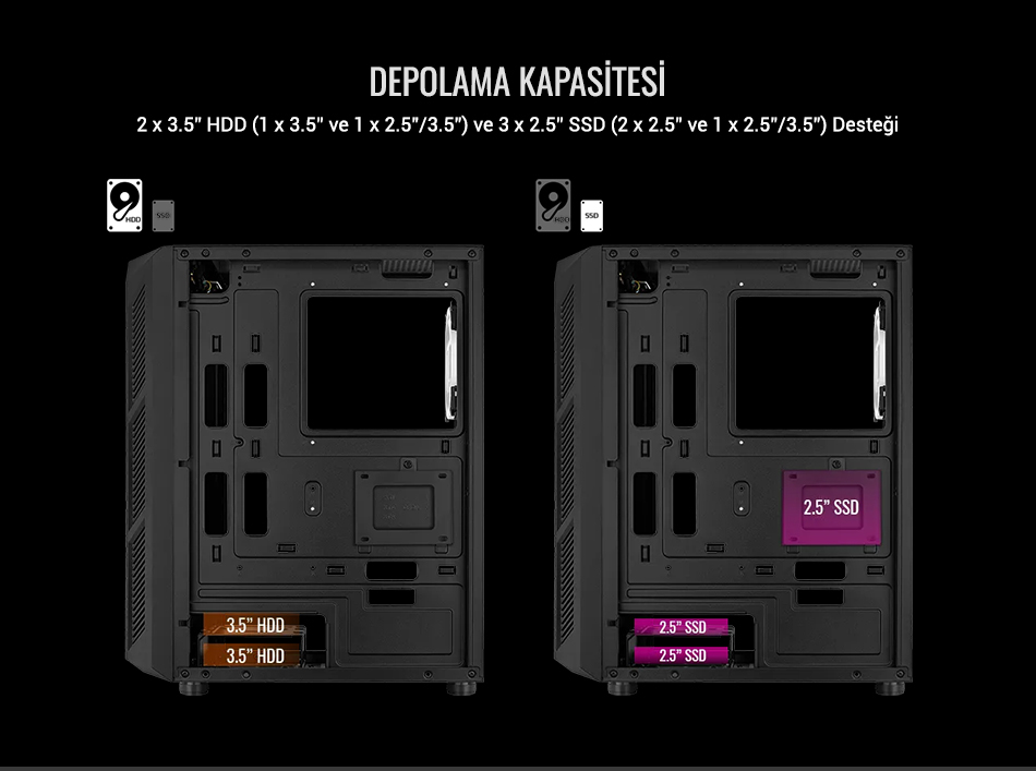 | 3.5" HDD/SSHD Yuvası | : 2 Adet |