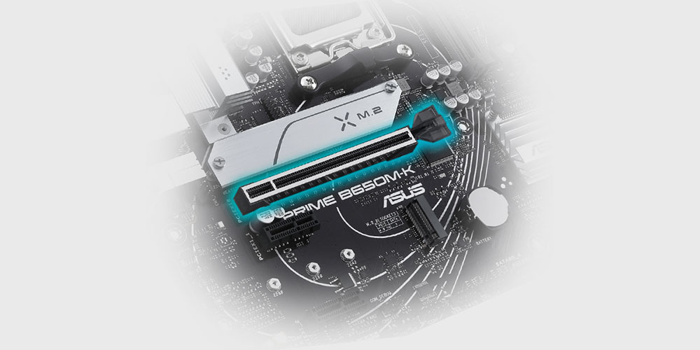 Biri PCIe 5.0 üzerinden 128Gbps’e kadar veri aktarımına destek veren toplam iki PCIe M.2 yuvası sunan PRIME B650M-K, işletim sistemi veya uygulamalar için kullanılan sürücülerde daha hızlı açılış ve yükleme süreleri elde edilmesini sağlıyor.