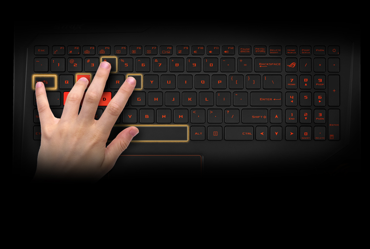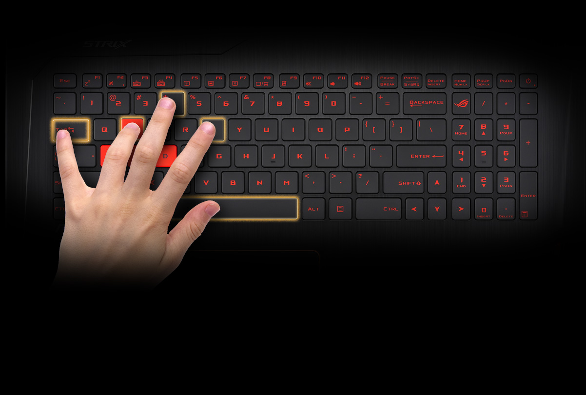 ROG Strix GL702VS Asus'a özel Overstroke teknolojisi klavye ile gelir ve tarz sahibi kırmızı arka aydınlatması, özel olarak tasarlanmış WASD tuşlarına ve 1.6mm hareket mesafesine sahiptir. Mühendislik ekiplerimiz klavyelerimizi en yüksek dayanıklılık için titizlikle test eder. Sonuç: 10 Milyona varan vuruşa dayanıklı tuş ömrü.
