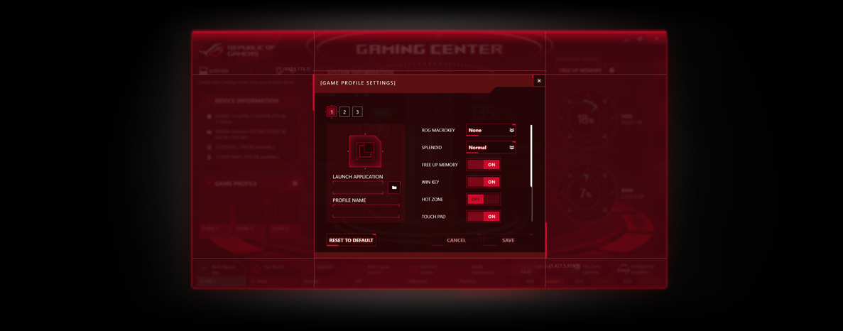ROG Gaming Center, ROG uygulamalarına ve ayarlarınıza kolay erişim imkanı tanır. Entegre uygulamalar ROG Gamer First, XSplit Gamecaster, ROG MacroKey ve Spendid'i içerir.