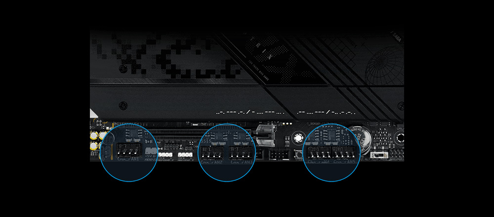 Strix X870-F'nin sahip olduğu beş adet kasa fanı başlığı, PWM veya DC fanların otomatik olarak tespit edilmesine destek verir.