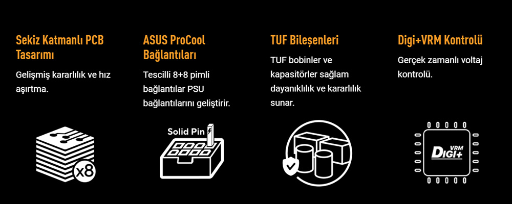 Askeri düzeyde bir yenilik olan TUF LANGuard, sinyal eşleşme teknolojisi ve yüzeye monte edilen üst düzey kapasitörlerle verimi artırarak anakartı yıldırım ve statik elektrik gibi durumlara karşı korur.
