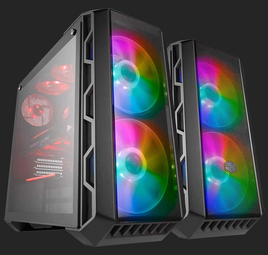 İki farklı ön panel, iki adet 200mm ARGB fan ve taşıma kolu sayesinde MasterCase H500, yüksek performans ve hava akışı isteyenler için özel olarak tasarlanmıştır. Adreslenebilir RGB fanlar ile güçlendirilen H500 artık birinci sınıf aydınlatma imkanı da sunuyor.