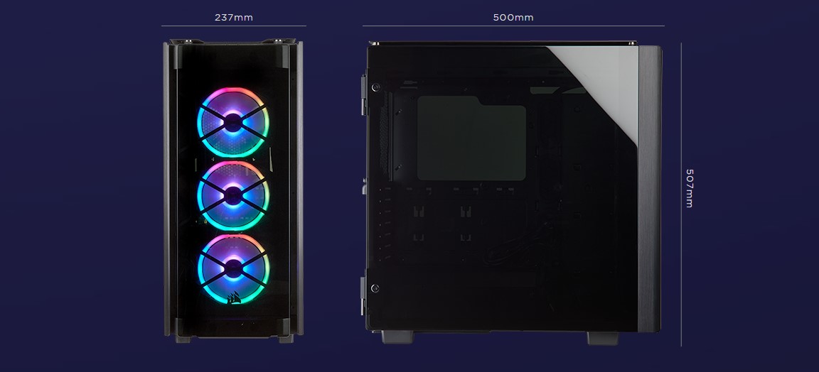 Corsair Obsidian Serisi 500D RGB SE yüksek kalite aluminyum yapısı, koyu renk temperli cam panelleri ve Corsair Commander Pro destekli çarpıcı RGB ışıklandırmasıyla eşsiz bir görünüme sahiptir. |