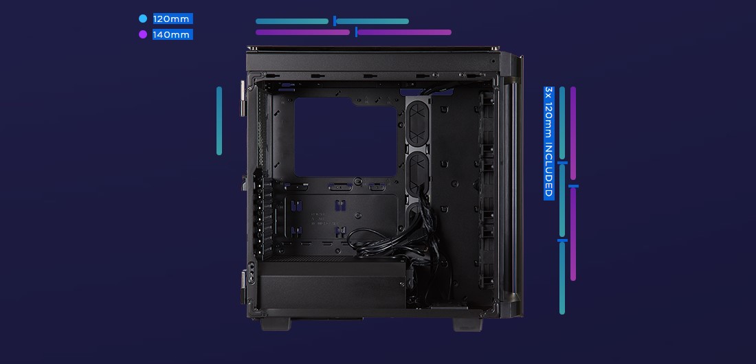 Direct Airflow soğutma tasarımıyla sisteminizin en çok ısınan parçalarına direkt serin hava ileterek üstün bir soğutma performansı sunar. |