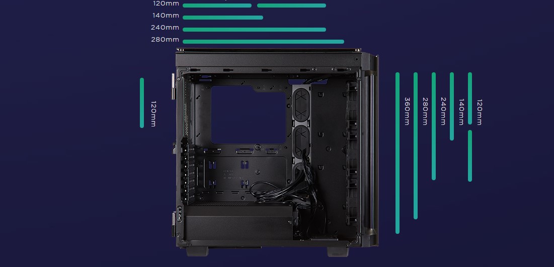120, 140, 240, 280 ve 360mm radyatör seçenekleri |