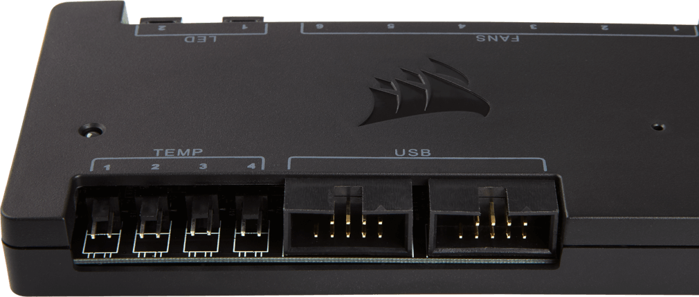 The CORSAIR Commander PRO controls up to six case fans and two RGB lighting channels, with four repositionable temperature sensors and two USB 2.0 internal headers.