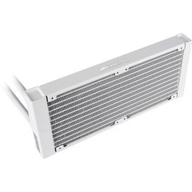 CORSAIR Hydro Serisi H100i RGB PLATINUM SE, aşırı CPU soğutması için üretilmiş parlak beyaz gövdede 240 mm radyatör ve canlı RGB aydınlatmaya sahip hepsi bir arada sıvı CPU soğutucudur.