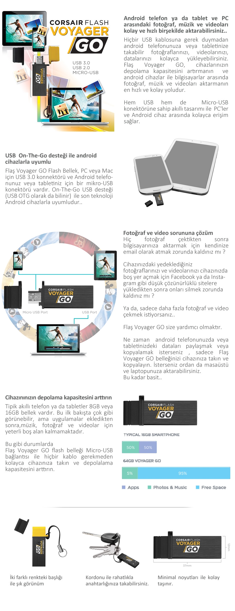 | Model | : | Corsair Voyager GO 32GB USB 3.0 USB BELLEK |