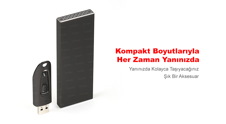 M.2 SSD disklerinizin özel yuvası ile USB3.0'ın yüksek hızına ve şık tasarımlı alüminyum disk kutusunun ayrıcalığına kavuşacaksınız. Dark StoreX.M2 sahip olduğu micro USB3.0 bağlantı kablosu ve geriye dönük USB uyumluluğu ile maksimum kullanılabilirlik sunar. Sürücü ve kurulum gerektirmeyen Tak/ Çalıştır özelliği sayesinde tüm bilgisayarlarda kolayca kullanabilirsiniz. Sizde M.2 SSD ve USB3.0' ın yüksek performansına şık alüminyum gövde ile eşlik eden Dark M.2 SSD kutusuna terfi edin, kariyerinizdeki başarıyı taçlandırın!