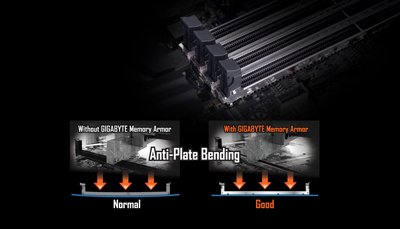 AORUS'un tek parçalı paslanmaz çelik ekran tasarımı, PCB bozulmalarına ve bükülmeye, plakanın bükülmesine karşı ve olası herhangi bir ESD girişimini önler.