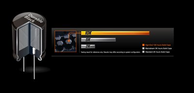 AORUS anakartları, aşırı performans konfigürasyonlarında dahi, uzun süreler boyunca maksimum verimde performans gösterecek şekilde derecelendirilmiş mutlak en iyi kalite katı hal kapasitörlerini entegre eder. CPU yükü ne kadar yüksek olursa olsun, ultra düşük ESR ile, bu, sistemleri zorlu itmek, ancak mutlak güvenilirlik ve istikrar isteyen son kullanıcılar için huzur sağlar. Bu özel kondansatörler ayrıca AORUS anakartlarında özel olarak jet siyahıyla gelir.