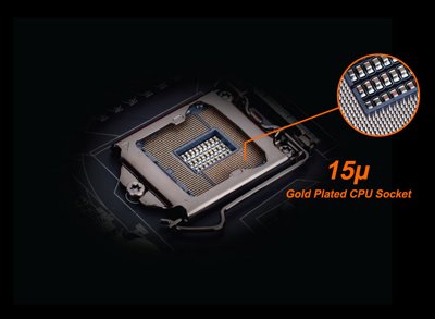 AORUS anakartlar 15 mikron kalınlığında altın kaplamalı CPU soketi ile donatılmıştır; bu da kullanıcıların korozyona uğramış iğneler veya kötü kontaklar konusunda herhangi bir endişesi olmaksızın CPU soketinin fazla mesai için mutlak güvenilirlik ve uzun ömürlülüğün tadını alabileceği anlamına gelir.