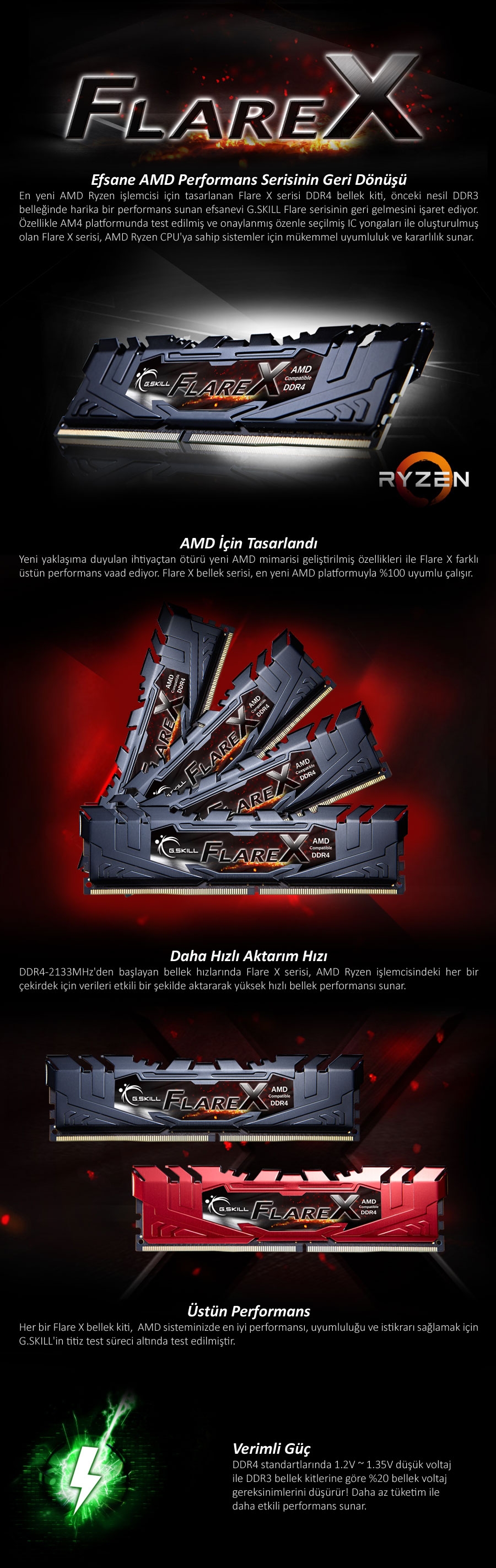 | Model | : | GSKILL Flare X DDR4-3200Mhz CL14 16GB (2x8GB) AMD Ryzen Uyumlu (14-14-14-34) 1.35V |