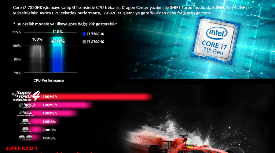 Super Raid 4 ile artık oyunlara girişte daha yüksek hız sunuluyor. NVMe adı verilen teknoloji sayesinde 3300MB/SN okuma hızına sahip olabilir ve en kısa sürede işlerinizi tamamlayabilirsiniz.