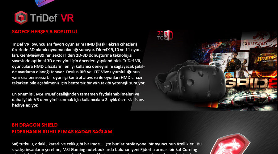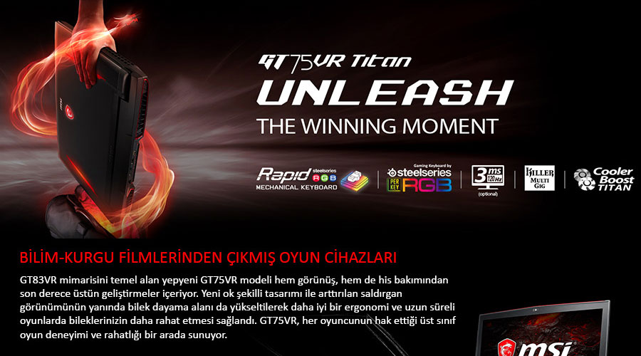 MSI GT83VR modelini temel alan GT75VR ürünü, hem tasarım hem de sahip olduğu yüksek teknolojili özellikleri ile dikkatleri üstüne çekiyor. Diğer modellere göre daha fazla saldırgan görünüm sağlıyor ve ok şeklinde tasarımı ile şık olmayı başarıyor. Ayrıca genişletilmiş ve yükseltilmiş el dayama alanı ile oyun oynarken ve diğer işlerinizi hallederken kolaylık sağlıyor.