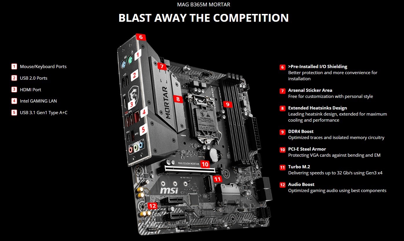 MSI Intel MAG B365M MORTAR 1151P DDR4 SES GLAN HDMI M.2 USB3.1 mATX Anakart