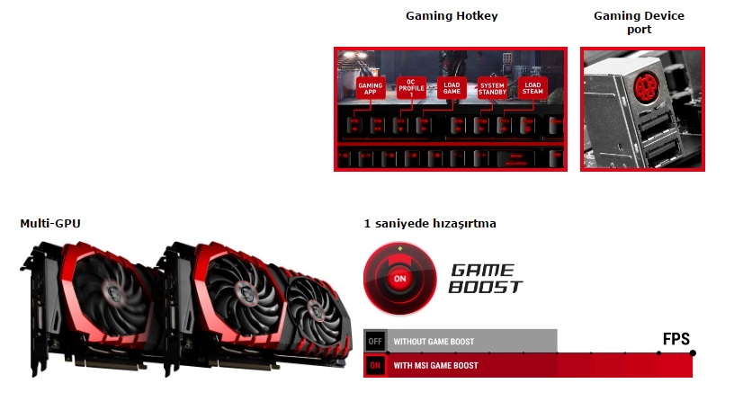 OYUN İÇİNDE AVANTAJINIZBenzersiz MSI GAMING araçlarıyla oyunda rakiplerinizi geride bırakın. Akıllı donanım ve yazılımlar yeteneklerinizi öne çıkarmak için tasarlandı.