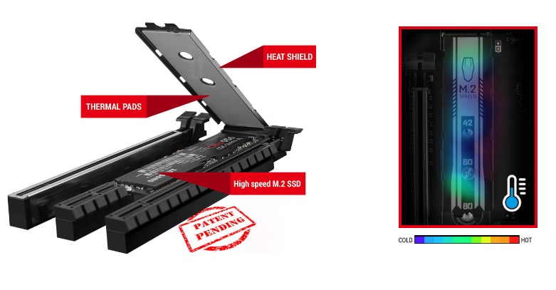 M.2 SHIELD İLE M.2 CİHAZINIZI KORUYUN VE SOĞUTUNBenzersiz M.2 Shield ile M.2 cihazınızı daha güvenli ve daha kolay bağlarken aynı zamanda daha soğuk çalışmasını da sağlayın. MSI M.2 Shield üzerinde bulunan soğutma yastıkları M.2 cihazınızın sıcaklığını düşürmeye yardımcı olur; böylece ani ısı dalgalanmalarını engelleyerek yavaşlamasını da önler. M.2 Shield ile sisteminiz yıldırım hızında çalışacak!