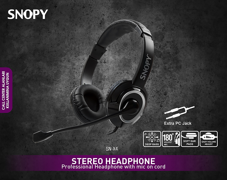 Snopy SN-X4 Siyah Mikrofonlu Kulaklık ; Dayanıklı ve sağlam mikrofonu, ayarlanabilir kafa bandı, deri kaplı kulak süngeri gibi özellikleri ile sorunsuz kullanım keyfini yaşayın.