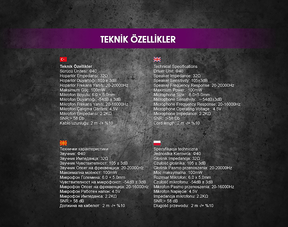 | Kulaklık Modeli | Kulaküstü Tam Boy |