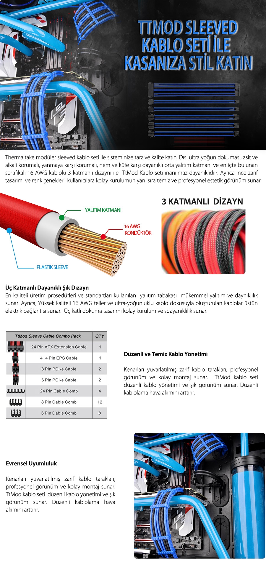 | Model | : | Thermaltake TtMod Mavi/Siyah Power Supply Sleeved Kablo Seti (16 AWG) |